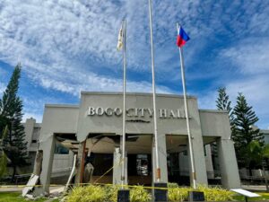 The Bogo City Hall building is seen here with visible damage to its structure. — OFFICE OF CIVIL DEFENSE FACBOOK PAGE