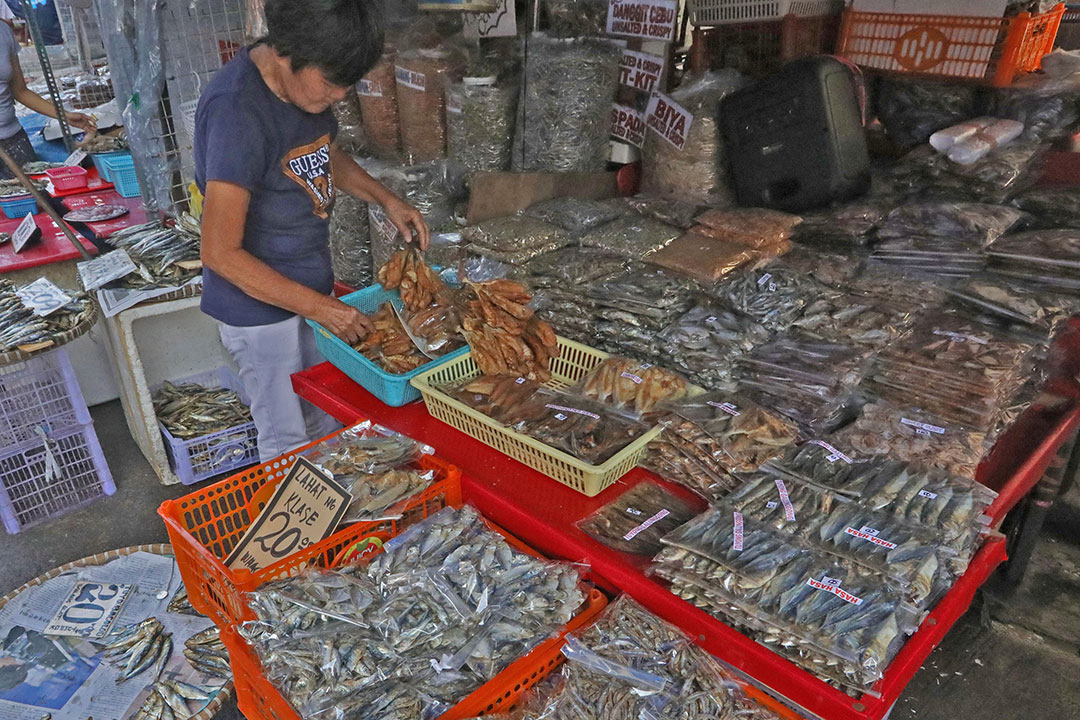 A VENDOR sells dried fish at a market in Manila. A BusinessWorld poll conducted last week showed 10 of 16 analysts expect the Monetary Board to pause monetary easing at its Oct. 9 meeting. — PHILIPPINE STAR/EDD GUMBAN